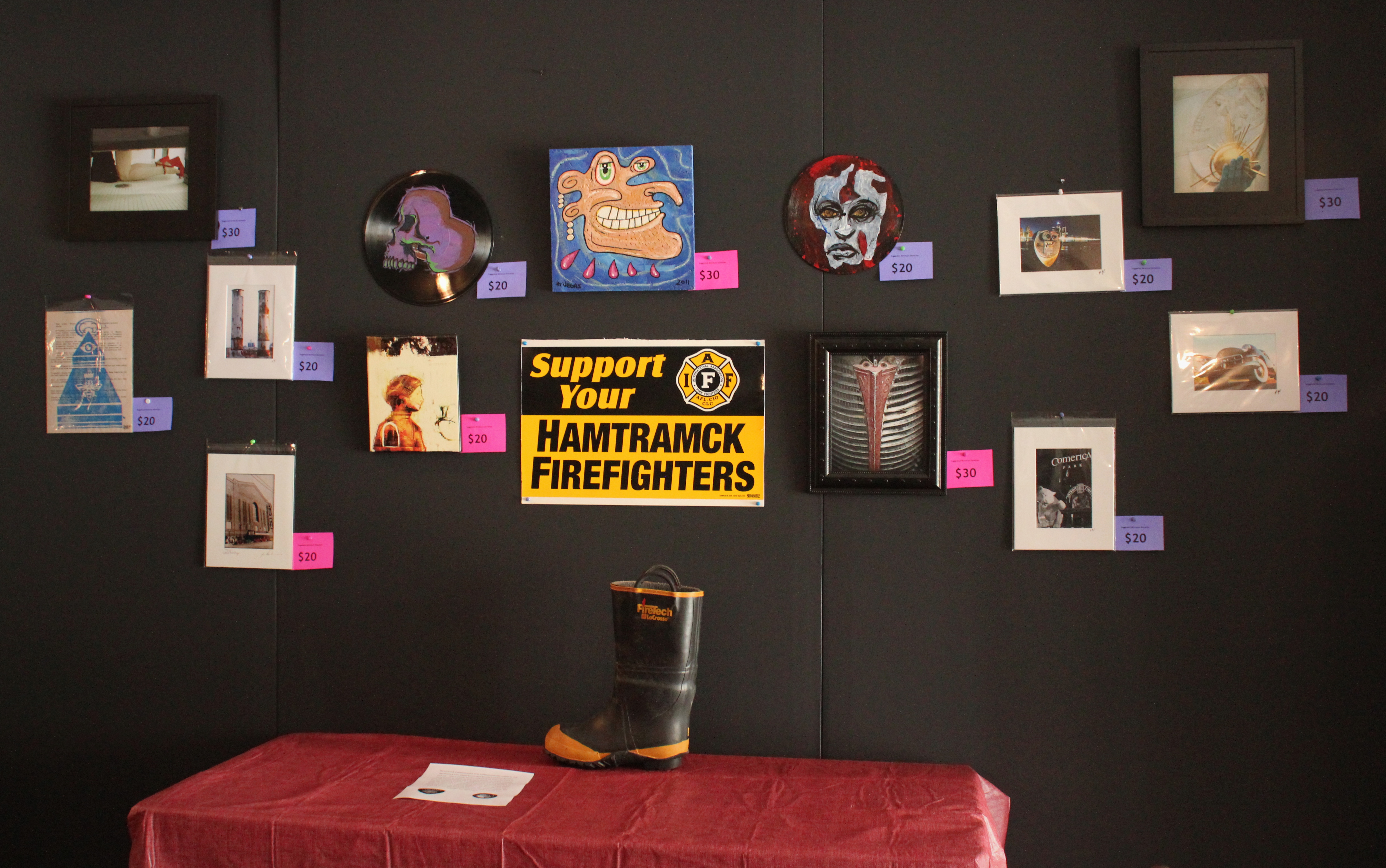 Be sure to also check out the wonderful collection of art donated by a variety of local artists to benefit the Hamtramck Fire Dept. These pieces are available for immediate cash & carry and go to a great cause!
